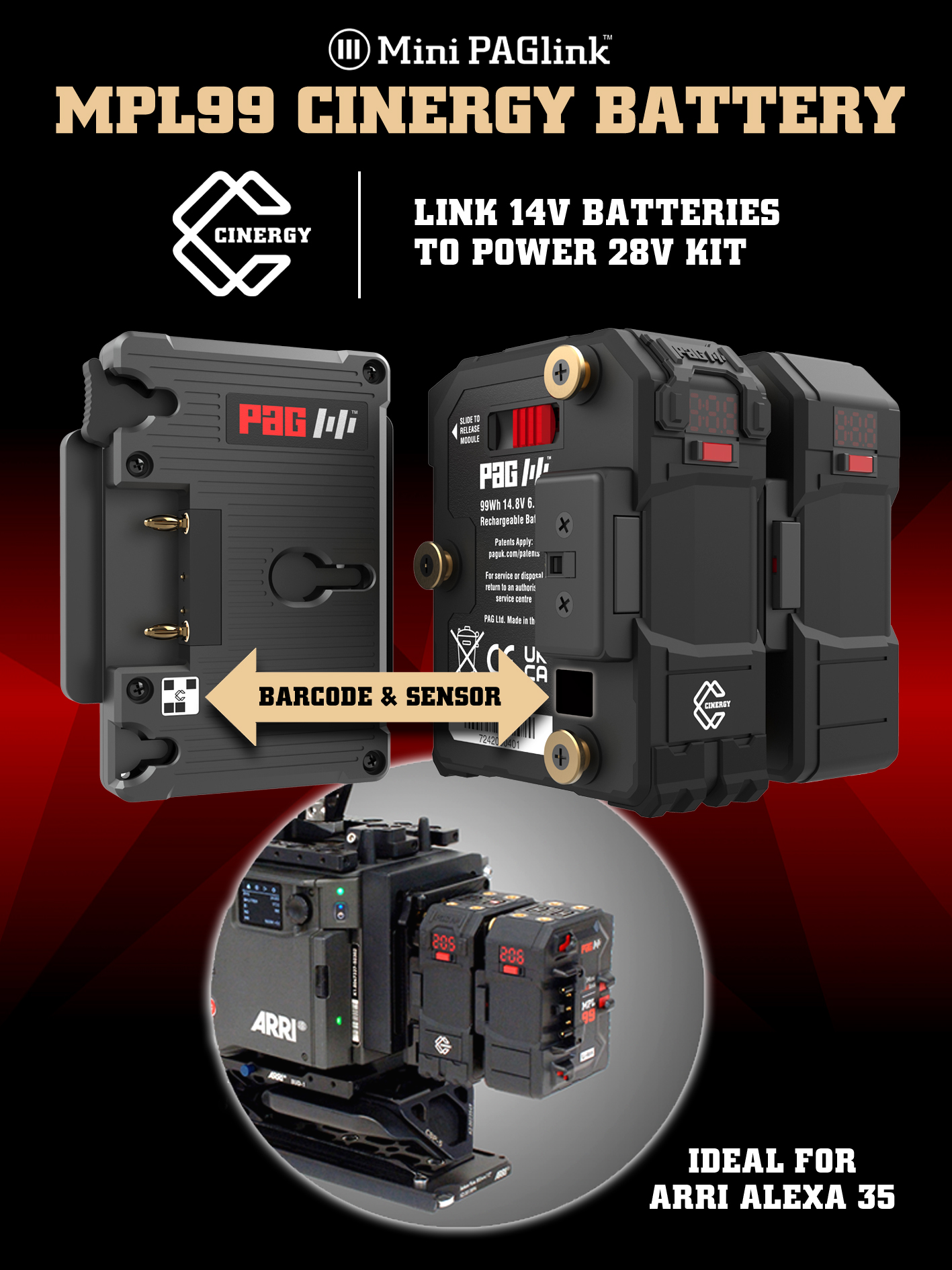 PAG’s intelligent linking battery technology is the most advanced in the industry, and offers unique benefits to camera professionals, such as adding batteries to stay powered-up or hot-swapping without an additional plate.